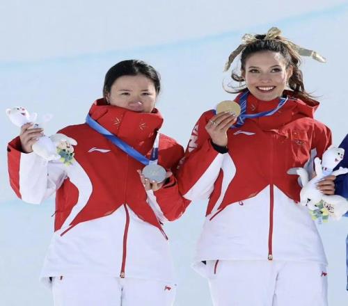 騰空、翻轉、落地,不俗的表現讓她收獲了一枚寶貴的銀牌,而谷愛凌實現了衛冕。這是屬于兩個中國姑娘共同閃耀的時刻。