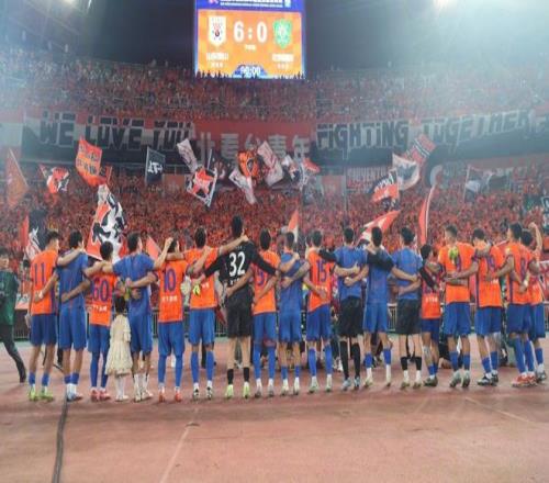 去年8月31日,6:0大勝國安后,泰山球員與球迷一起慶祝。(泰山俱樂部供圖)