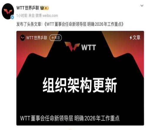 3月13日,WTT世界乒聯官方發文《WTT董事會任命新領導層,明確2026年工作重點》,正式回應劉國梁卸任WTT董事會主席一事,國際乒聯主席佩特拉·索林將接任該職務,此次人事調整源于國際乒聯執行委員會新的職責劃分。