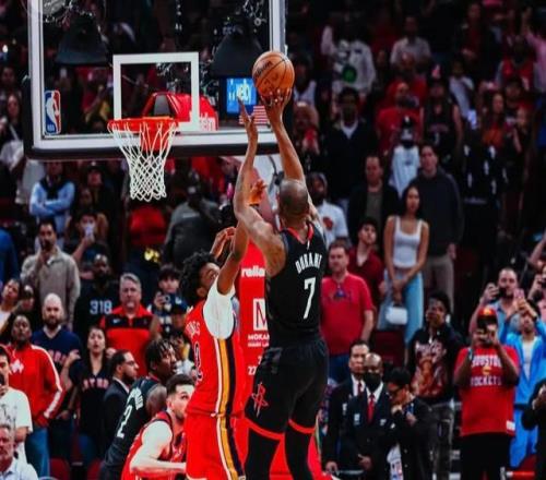 最后31.8秒,鵜鶘領先4分,小賈投進關鍵三分,隨后鵜鶘的默里踩線失誤。還剩13秒,火箭落后1分,這樣的時刻,不看比賽的人也能夠想到火箭該把球交給誰。