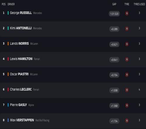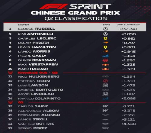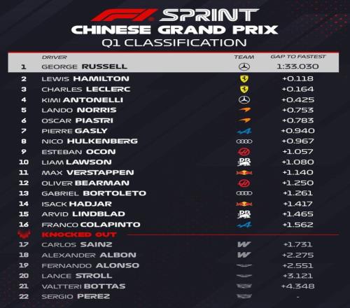 2026F1中國站沖刺排位賽今天下午結束爭奪,在一練表現亮眼的梅奔車隊徹底不演了,拉塞爾以1分31秒520獲得沖刺賽的桿位,安東內利排在第二,諾里斯位列第三。諾里斯與拉塞爾的差距達到了0.621秒,今年的梅奔兩臺車實在是太快了……第四到第十依次是漢密爾頓、皮亞斯特里、勒克萊爾、加斯利、維斯塔潘、比爾曼、哈賈爾。