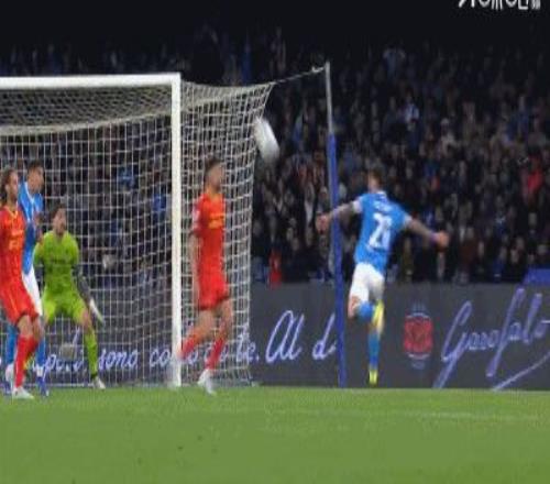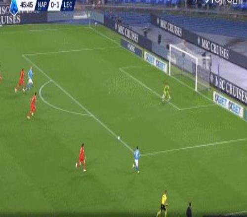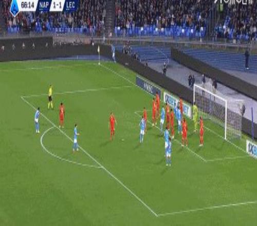第46分鐘,扳平比分,波利塔諾助攻,霍伊倫搶點破門,那不勒斯1-1萊切