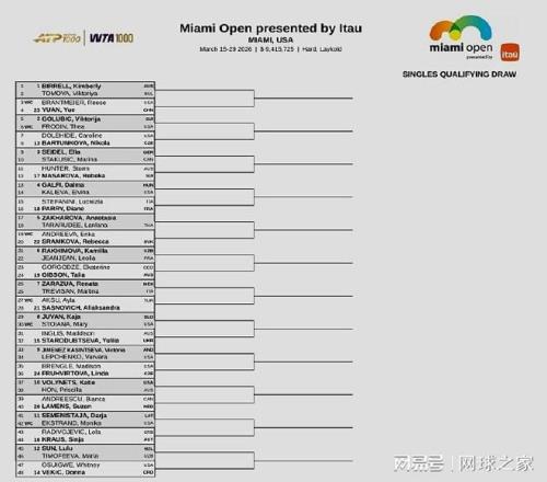 我們再來關注下周賽事。北京時間今晨,WTA1000邁阿密站公布了單打資格賽簽表,中國金花袁悅將與安德萊斯庫、維基奇等球員一同出戰,爭奪正賽席位。