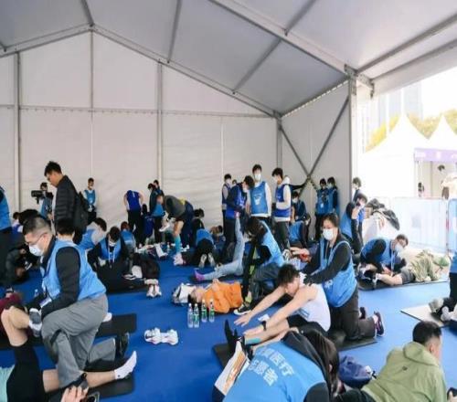 315名急救志愿者和120名急救跑者分布在各關(guān)鍵位置,他們既能第一時(shí)間發(fā)現(xiàn)異常,也能在奔跑中陪伴和鼓勵(lì)選手。