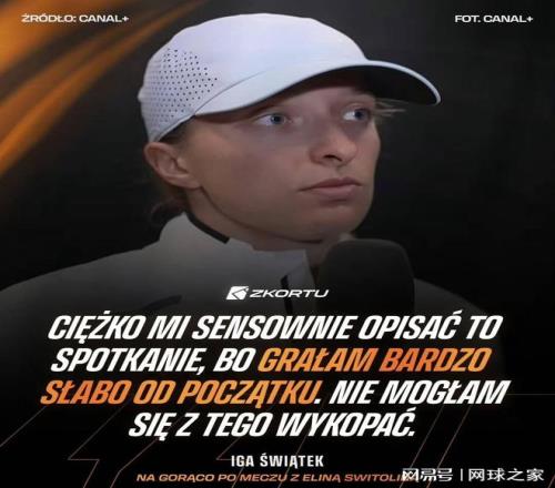 斯瓦泰克強調(diào),這并非對對手的不尊重,而是對自己狀態(tài)的失望,“我從頭到尾都打得很糟。我不想貶低斯維托麗娜,但我認(rèn)為她自己也感覺到這不是一場愉快的比賽。”
