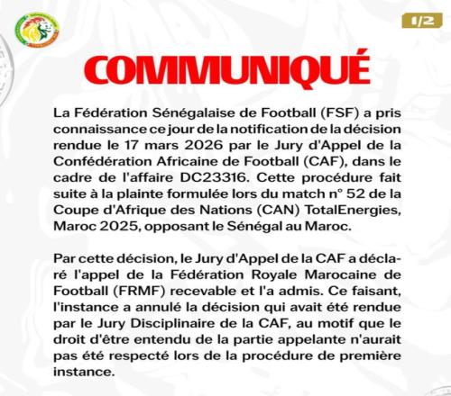 在被判0-3,摩洛哥之后,塞內加爾足協官方發布公告回應,他們的態度也是非常強硬,將會在最短時間內向位于洛桑的體育仲裁法庭(CAS)提起上訴。