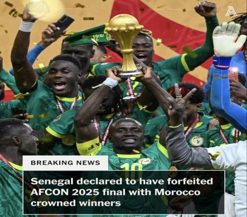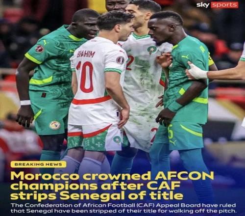 非洲足聯官方發布聲明,塞內加爾國家隊被判在非洲杯決賽中棄權,本場決賽按0-3摩洛哥獲勝。