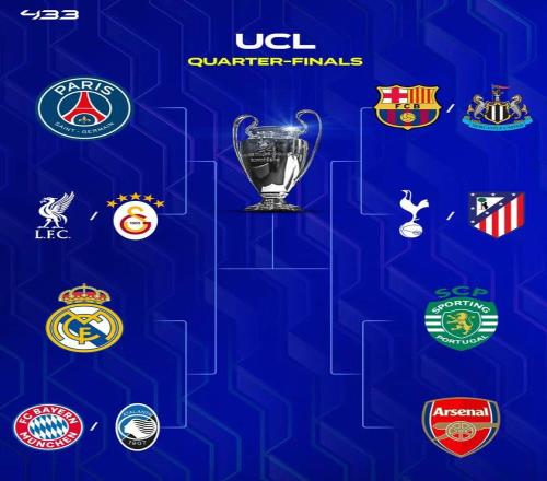 本賽季的歐冠8強已經誕生4支球隊,皇馬、阿森納、大巴黎順利晉級,葡萄牙體育則是回到主場5球逆轉博德閃耀,成功晉級。