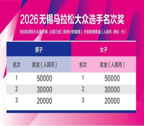 另外,無錫還首次設(shè)立大眾跑者獎項,冠軍大獎是國內(nèi)冠軍的一半:5萬元。誠意足夠。