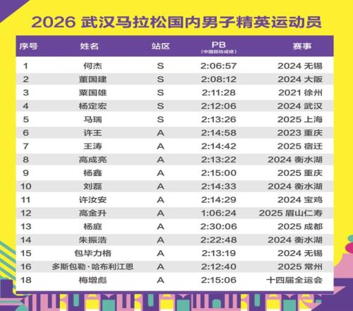 從賽會公布的名單看,三代武漢馬拉松男子國內(nèi)賽會紀錄創(chuàng)造者將同場競爭,他們分別是:2019年的董建國(2:12:34)、2024年的楊定宏(2:12:06)以及去年的何杰。