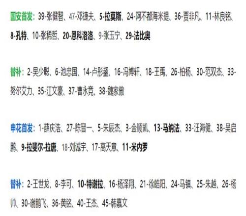 賽前雙方首發(fā):法比奧領(lǐng)銜國安四外援出戰(zhàn),張玉寧、張健智、鄧捷夫先發(fā),塞爾吉尼奧、王剛?cè)标嚕昊▌t是三外援先發(fā),分別是米內(nèi)羅、拉唐、馬納法,另外,吳曦、蓋伊因傷沒有進入大名單。