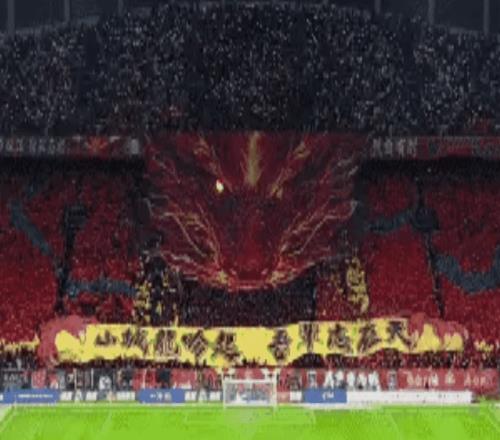 比賽開始時(shí),重慶主場(chǎng)的氣氛非常熱烈!TIFO很有氣勢(shì),一條巨龍徐徐展開。