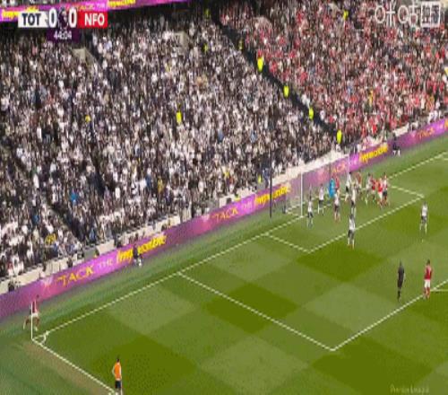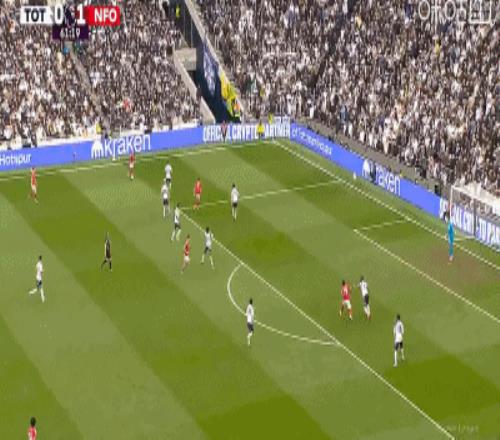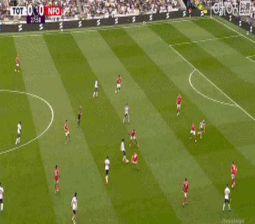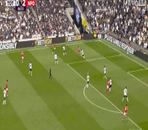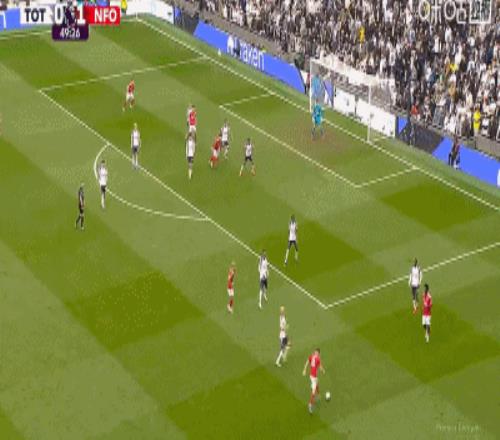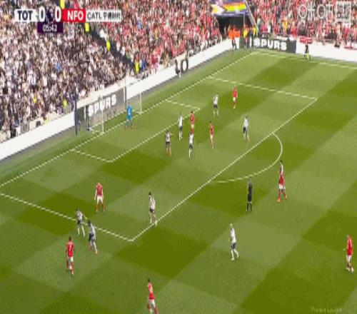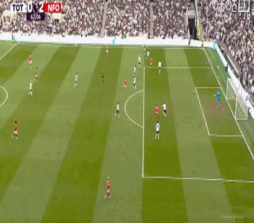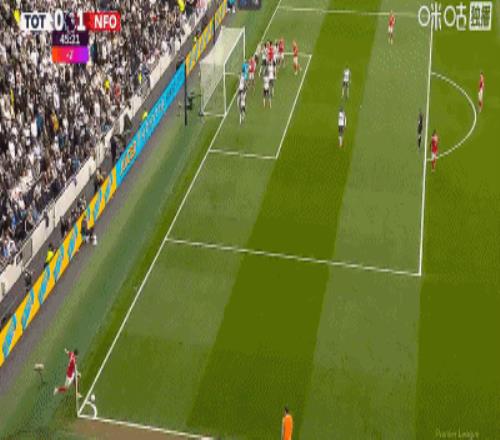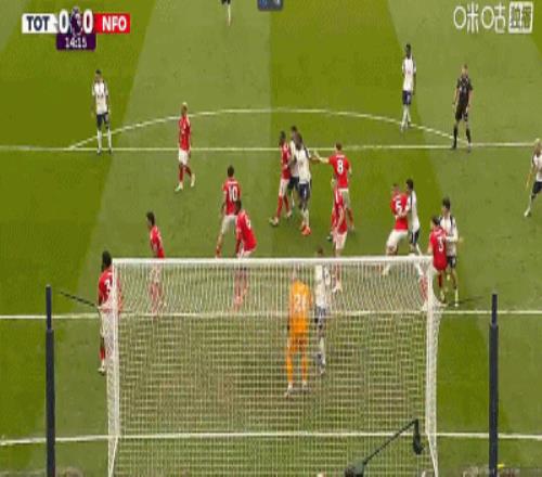 第45分鐘,伊戈?duì)?熱蘇斯角球中頭球破門(mén),森林1-0領(lǐng)先熱刺!